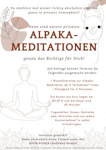 • Wunschtermine zur Alpaka-Meditation ab 4 Teilnehmer*innen